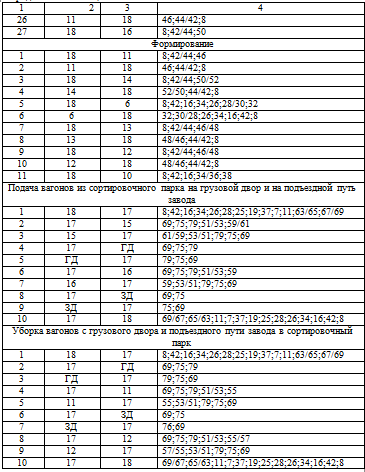 Таблица 3- Остатки вагонов на сортировочных путях и пунктах местной работы