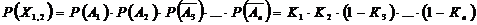 Р (Х1,2) = (1-1,0)∙0,28∙1,0= 0;