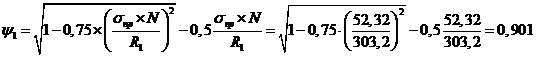 где ψ1 - коэффициент, учитывающий двухосное напряженное состояние труб, и определяемый по формуле