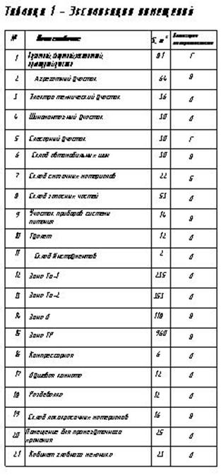 Рисунок 2.3 Экспликация помещений производственного корпуса