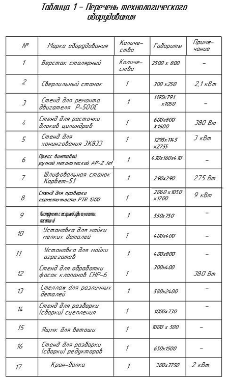 Рисунок 2.6 Перечень технологического оборудования технологическо планировки агpегатного участка
