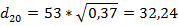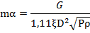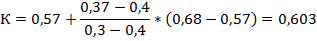 значении диаметра 53мм и m=0,37 получаем α=0,651*1*1,02454=0,667