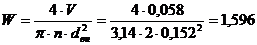 где n = 2 - число потоков;- допустимая линейная скорость продукта, W = 2 м/с [2, с.19];вн - расчетный внутренний диаметр трубы, м.