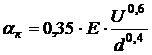 Е - коэффициент, зависящий от свойств топочных газов, значение которого определяем
