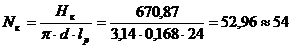 где n = 2 - число труб в одном горизонтальном ряду;- расстояние между осями этих труб; S1 = 0,275 м (см. табл.4);р - рабочая длина конвекционных труб; lр = 24 м (см. табл.2);