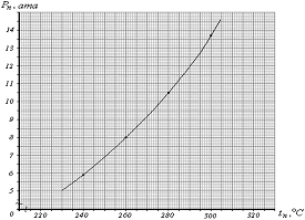 Предварительно задаемся значением Рн, принимаем Рн = 8 ата = 0,8 МПа, и по зависимости Рн = f(tн) (рис.5) находим температуру начала испарения продукта tн, соответствующую этому давлению: tн = 260 0С.