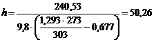 Расчетная высота не совпадает с принятой ранее, следовательно, делаем пересчет, принимая высоту h = 50,26 м.