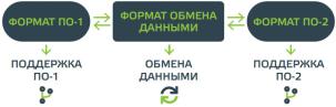 Формат IFC разработан как промежуточный формат при обмене данными между другими форматами программных средств. Нет большой разницы между форматом обмена и форматом программного обеспечения, оба являются просто структурированными данными. Их разница состоит в назначении применения. Формат программного обеспечения структурирован в соответствии с функциональностью программного обеспечения, формат обмена структурирован для передачи данных, а не для поддержки функциональности (рис. 36).