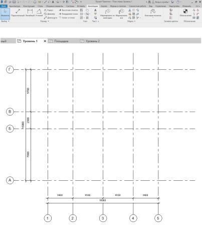 Заметим, что уровень 2 находится не на уровне 2-го этажа. Высота этажа по проекту должна быть соблюдена в уровнях, так как уровень – это также отметка пола этажа.