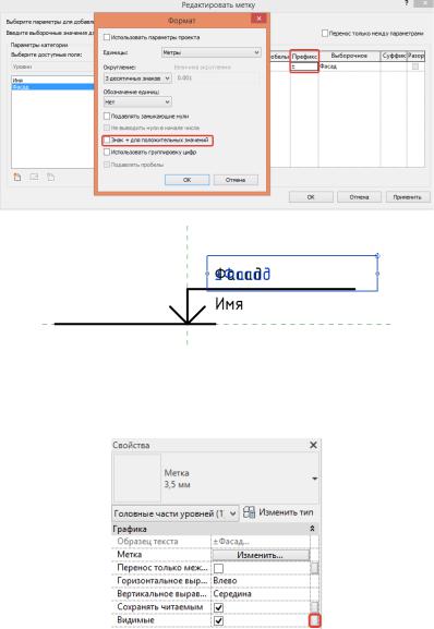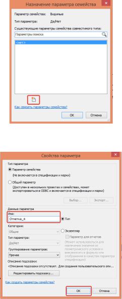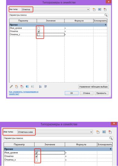 Вторую отметку редактируем аналогично через свойства и в строке «Видимые» выбираем «Назначение параметров семейства». Создаем новый параметр, называем его «Отметка».