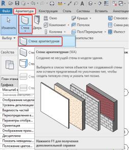 Базовая стена – это стена, у которой есть один или несколько слоев. Стена «Витраж» (витрина) – навесная стена, может использоваться как вентфасад или сендвич-панели. Составная стена – это одна стена, которая стоит на другой стене (разное фасадное оформление).