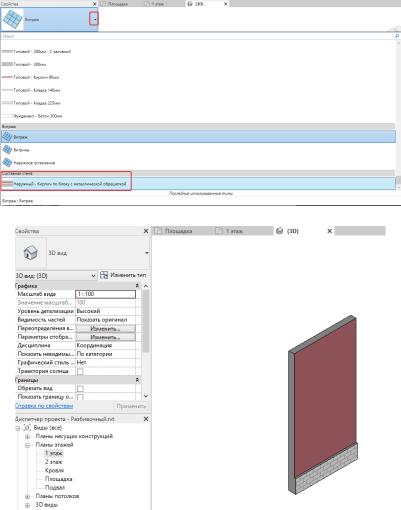 Впрограмме заданы три типа стен: базовая стена, витраж и составная стена.