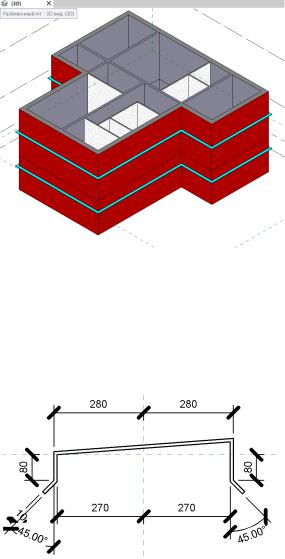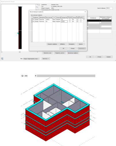 Посмотрим на фасадах, что теперь у всех стен, имеющих одинаковый тип, который мы использовали, появился выступающий профиль.