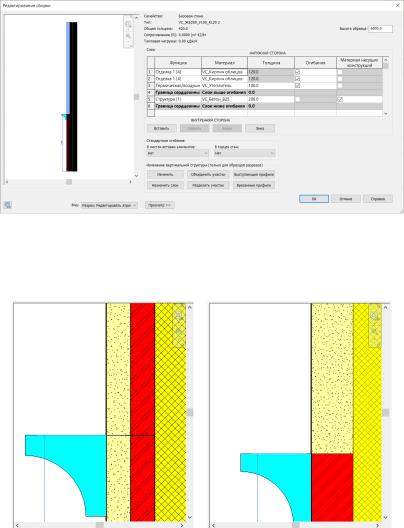 Выделим снова нашу базовую стену, в свойствах выберем «Изменить тип», в структуре «Изменить». Вставим еще один слой – «Отделка 1». Оба материала должны иметь половину исходной толщины: 120 / 2 = 60 мм.