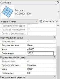В свойствах настроим выравнивание вертикальной сетки – зададим его по центру, угол 45°, смещение – если нужно, чтобы первый элемент был определенного размера, для примера зададим 500.