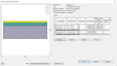 Спомощью инструмента «Перекрытие» мы можем задать также отмостку здания. Создадим нужный тип перекрытия через свойства, изменить тип, скопируем и назовем «VC_Отмостка_150». Структура будет Бетон В25, созданный нами ранее, толщиной 150 мм, и поставим галочку в столбце «Переменная», так как толщина отмостки к краю уменьшается.
