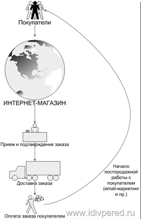 Целью перехода к интернет продажам, является снижение издержек на аренду площадей и количество персонала. В отличие от физической торговли, торговля через интернет подразумевает совсем другое ведение деятельно предприятия. Несмотря на плюсы, тут появляются и свои минусы, как правило маркетинговые - неизвестные размеры рынка, пассивность покупателей, незнание потребителей. В классическом понимании, то есть, в том смысле, в каком он понимается в наиболее развитых странах, "Интернет-магазин", - интерактивный сайт, в котором: