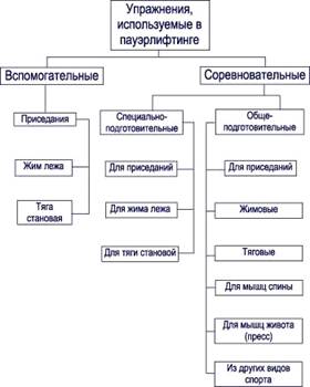 Рис. 1. Классификация упражнений используемых в пауэрлифтинге