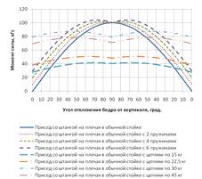 Для проведения сравнительного анализа нами был задан общий для всех видов отягощений диапазон момента силы тяжести в нижней точке тела от 40 до 160 кГс при использовании вариантов отягощений, указанных на рис. 2.