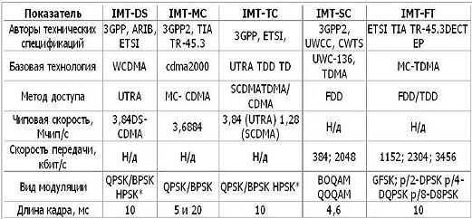 Предложения от этого партнерства представлены двумя вариантами радиоинтерфейсов, получившими обозначение IMT-MC (IMT-2000 Multi Carrier) и IMT-SC (IMT-2000 Single Carrier), (таблица 5).