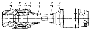 сферическая шайба; 5 - валик; 6 - пружина; 7 - уплотнительная манжета