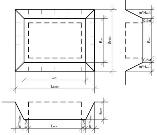 где в - ширина котлована по дну, м;- заложение откосов котлована;
