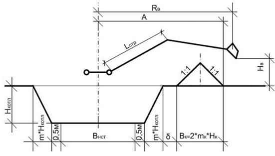 Для подбора экскаватора вычисляем расстояние от оси выемки до внешней