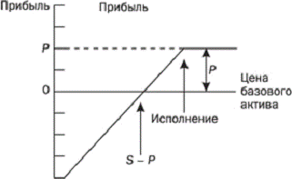 Таким образом, продавец опциона остается при S - P, а при любой цене базового актива, большей, чем S - P, он имеет прибыль, которая ограничена полученной премией. При любой цене, меньшей, чем S - P, продавец опциона несет убытки.