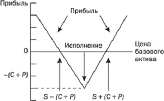 Таким образом, держатель стрэддла остается при S - (C + P) и S + (C + P), а при любой цене, меньшей, чем S - (C + P), и большей, чем S + (C + P), он имеет прибыль. Если цена попадает в диапазон между S - (C + P) и S + (C + P), держатель стрэддла терпит убытки.