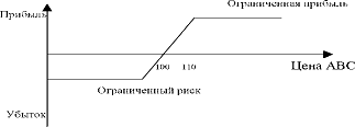 Вспомним точку зрения инвестора; он считает, что цена на АВС возрастет со 100 до 110. Если так, то ему уже не нужен колл (100) выше 110. Поэтому он рад передать кому-нибудь другому риск, связанный с возможным ростом цены, продавая колл (110). Если ожидания инвестора оправдаются, и цена актива к сроку окончания действия опциона будет 110 или меньше, право покупки по 110 не будет стоить ничего, и у него остается премия с продажи колл-опциона (110).