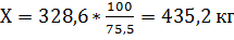 Находим количество говядины на кости, необходимого для получения 328,6 кг жилованного мяса первой категории (используя приложение 10 методических указаний):