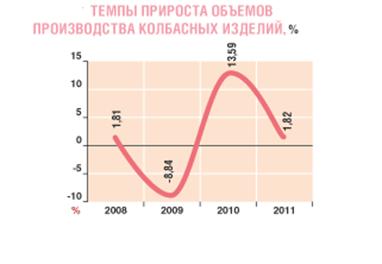 Российский рынок колбасных изделий за последние несколько лет претерпел заметные качественные изменения. Усиление конкуренции, обусловленное появлением новых участников рынка, побуждает производителей к повышению качества выпускаемой продукции и уделению большего внимания вопросам продвижения собственной продукции. Наряду с известными крупнейшими мясоперерабатывающими предприятиями на рынке активизируются мелкие и частные предприятия. В связи с повышением уровня доходов населения наблюдается изменение потребительских предпочтений в сторону дорогостоящих мясных продуктов. За последние годы наметилась тенденция роста объема производства отечественных колбасных изделий. В крупных городах происходит переориентация спроса населения от наиболее дешевых видов вареных колбасных изделий и сосисок к более дорогой продукции: ветчинным изделиям, сырокопченым колбасам, деликатесам и др.