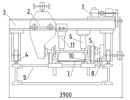 редуктор; 9- рама кондуктора; 10- опорная балка; 11- передвижной вертикальный