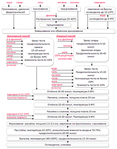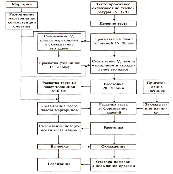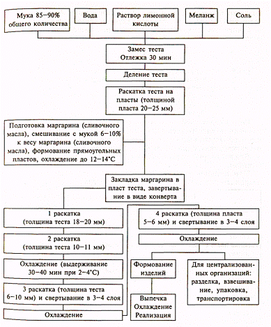Технологическая схема производства слоеного изделия состоит из следующих стадий: