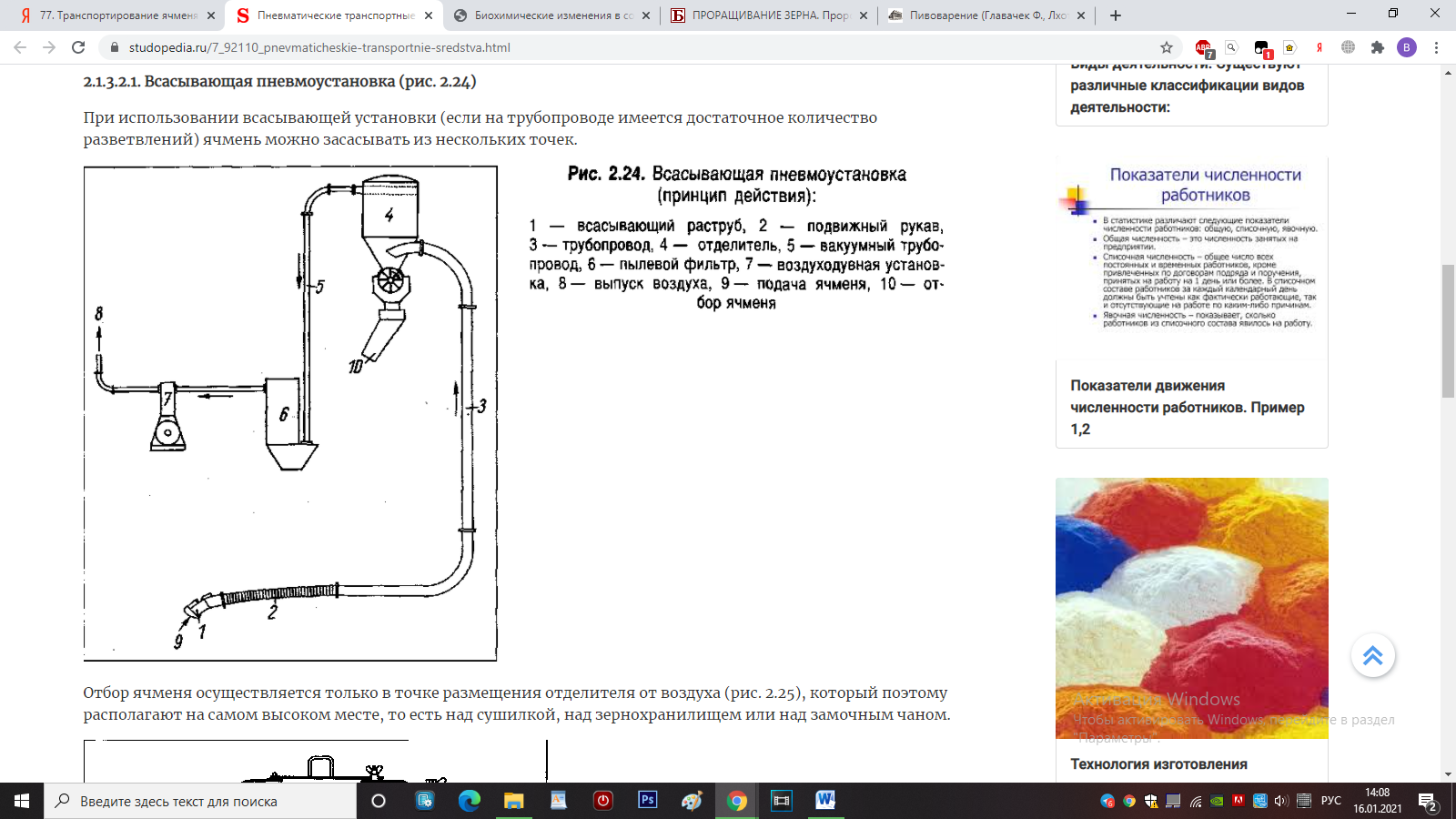 Для перемещения бестарных сыпучих материалов наряду с механическим транспортом на солодовенных и пивоваренных предприятиях широко используется пневмотранспортное оборудование. В этих устройствах ячмень или солод перемещаются по трубопроводам мощным воздушным потоком. Чтобы поднять транспортируемый материал, требуется скорость воздуха около 11 м/с, однако чтобы сырье перемещалось надежно, обычно применяют значительно большие скорости потока воздуха - порядка 20м/с. Такой воздушный поток получают при помощи роторных лепестковых воздуходувок или вентиляторов высокого давления.
