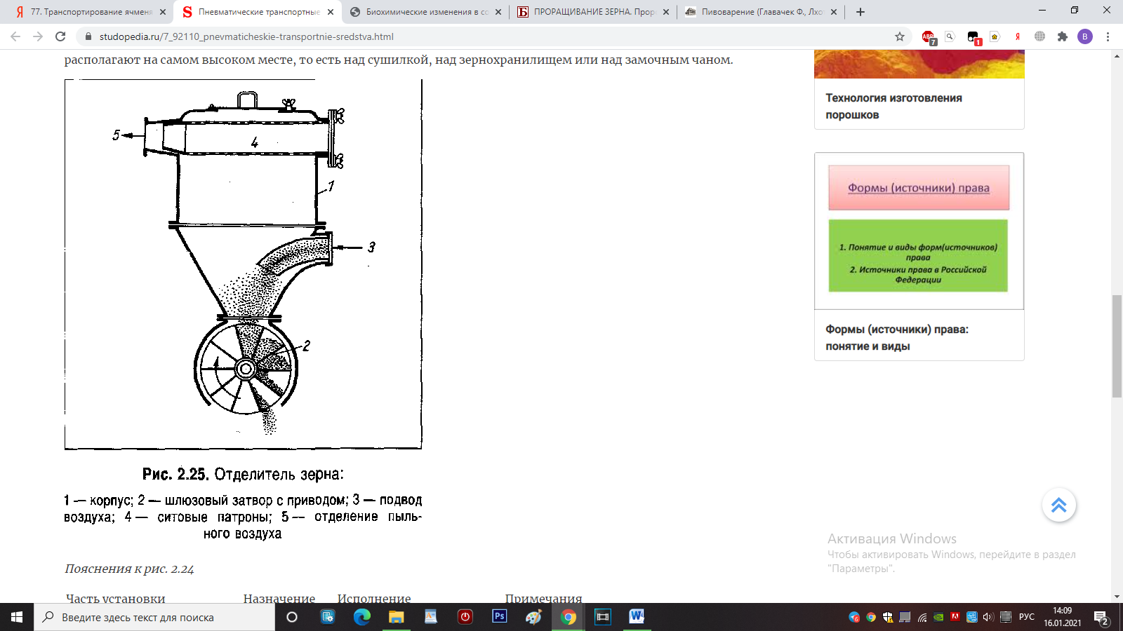 Отбор ячменя осуществляется только в точке размещения отделителя от воздуха (рис. 2.25), который поэтому располагают на самом высоком месте, то есть над сушилкой, над зернохранилищем или над замочным чаном.