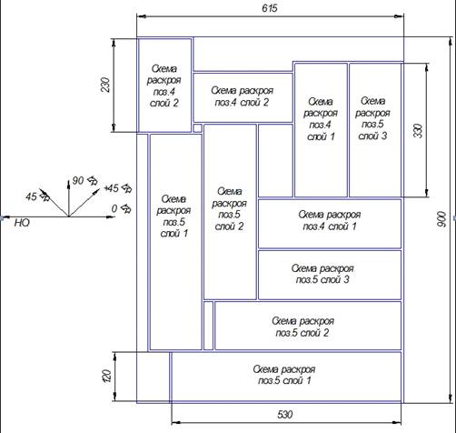 Расчет количества армирующего материала производим используя схему раскроя и приложения программы КОМПАС-3D V8 Plus+.