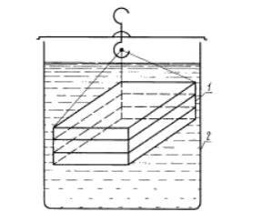 Метод основан на установлении увеличения массы мучных кондитерских изделий при погружении в воду при температуре 20 ̊С на определенное время. Намокаемость характеризуется отношением массы изделий после намокания к массе сухих изделий и выражается в процентах. Для определения намокаемости отбирают не менее 9 изделий данного вида.Для определения намокаемости применяется прибор, состоящий из трехсекционной камеры с открывающейся общей дверцей 1 и емкости для воды 2 (Приложение И, Рис. И1). Для проведения испытания камеру опускают в волу, вынимают, вытирают фильтровальной бумагой с внешней стороны и взвешивают с погрешностью не более 0.01 г. В каждую секцию камеры закладывают по одному целому печенью или по одной половине галеты или крекера (прямоугольные разрезают по диагонали, круглые - по диаметру) и взвешивают камеру с изделиями на весах с погрешностью не более 0.01 г. Камеру опускают в сосуд с водой, имеющей температуру 20 ̊С на 2 мин (для печенья сахарного сдобного и затяжного) и на 4 мин (для галет и крекера). Камеру вынимают из воды и держат 30 с в наклонном положении для стекания избытка влаги. После этого камеру вытирают с внешней стороны и взвешивают с намокшим изделием. Отношение массы намокшего изделия к массе сухого характеризует степень его намокаемости.