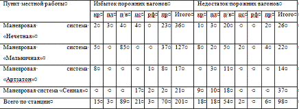 развозу местного груза, сокращение простоя вагонов по всем видам операций и