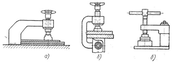 Рис. 9. Винтовые прижимы: а - фиксированный, 6 - откидной, в - поворотный