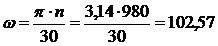 Перевод частоты вращения барабана в угловую скорость: