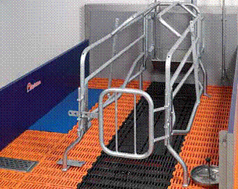 Станки изготовлены из труб, покрытых цинком горячего цинкования. Боковина из вертикально сваренных труб не дает свиноматке возможности развернуться. Ножки из нержавеющей стали бесступенчато вращаются на 360 градусов, что облегчает монтаж станка на бетоннощелевом полу и обеспечивает защиту от коррозии. Более высокое расположение кормушек в станках позволяет свиноматкеразместить голову под кормушкой. К тому же облегчается тщательнаячистка данного участка. Дверца для прогона хряка позволяет зафиксировать хряка на определенном участке контрольного прохода для более интенсивной стимуляции свиноматок во время осеменения. Станок комплектуется кормушкой и ниппельной