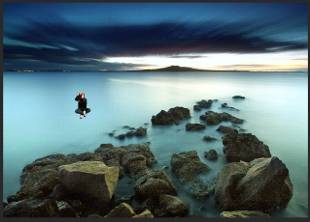 что человек сидит на камне. Но на этом этап фотомонтажа фона не закончен, так