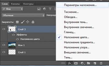 слое), либо нажав кнопку «добавить стиль слоя» на панели слоёв и выбрав пункт