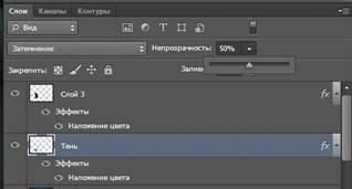 помощью настроек прозрачности слоя тени на панели слоёв: