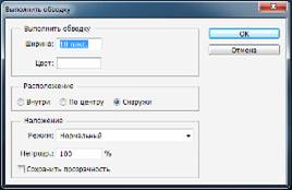 обводки, где можно выбрать ширину, цвет, расположение и режим наложения