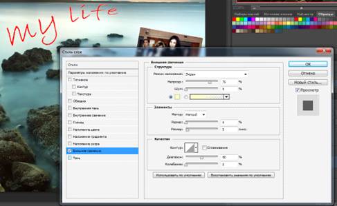 можно применить эффекты стиля слоя. Чтобы немного выделить наш текст, применим