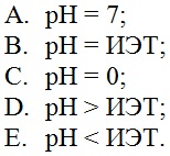 Высаливание и застудневание белков наиболее целесообразно проводить тогда, когда биополимеры находятся в изоэлектрическом состоянии. Укажите значение рН, которое соответствует такому состоянию: