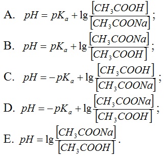 Для расчета количества компонентов при приготовлении буферных растворов по заданному значению рН пользуются уравнением Гендерсона-Хассельбальха. Укажите, какой вид имеет данное уравнение для ацетатного буфера: