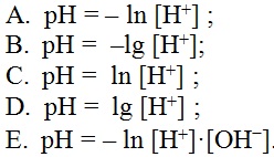 Часто вместо абсолютных значений молярной концентрации ионов H+ пользуются водородным показателем. Укажите математическое выражение данной величины.